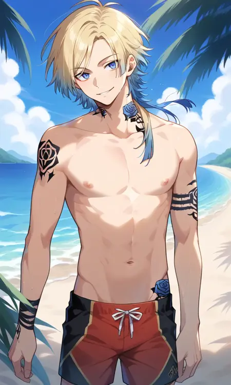 トリガー語: michael kaiser, 青い目, 金髪, 青髪, タトゥー, 首のタトゥー