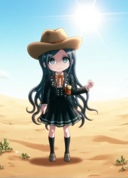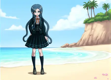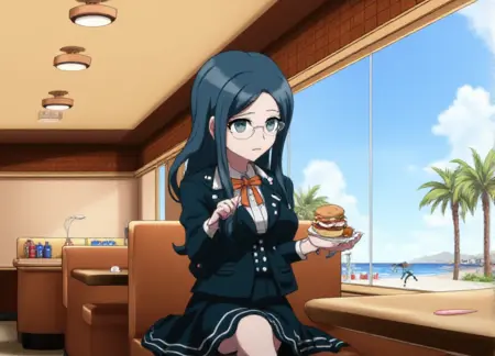 背景:特定の場所については学習していませんが、学習データに頻繁に登場した場所があります。Danganronpa V3やジャベロック島の設定をプロンプトに含めると、結果が改善する可能性があります。単に「V3」や「Jabberwock Island」と記述するだけでも、適切な方向に導く助けになるかもしれません。