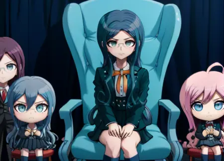 学習資料:主な学習データはDanganronpa V3とDanganronpa Sから成り、可能な限り公式の補足資料を追加しました。ゲーム関連データにはすべてのスプライトといくつかのゲーム内スクリーンショットを含み、LLMでキャプションを生成した後、手動で編集しました。さらに、『Danganronpa the Animation』と『Danganronpa 3』のスタイルデータも追加しました。後者については、学習データに混ざる可能性を懸念しましたが、追加有無で結果に差が出ないことを確認したため、維持しました。これにより、追加のLoRAなしでスタイル変更が容易になります。ただし、紬はこれらの作品に登場しなかったため、千愛のように恩恵を受けられません。