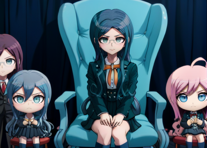 训练材料:大部分训练数据来自《弹丸论破V3》和《弹丸论破S》,尽可能补充官方周边素材。游戏相关数据包括所有像素图和少量游戏截图,经LLM生成说明后人工编辑。随后我加入了来自《弹丸论破动画版》和《弹丸论破3》的风格训练。虽然担心后者可能污染训练数据,但经测试有无该部分并无差异,因此保留以简化风格切换,无需额外LoRA。但由于凑并未实际出现在这些素材中,她从中受益的程度远低于千代等角色。