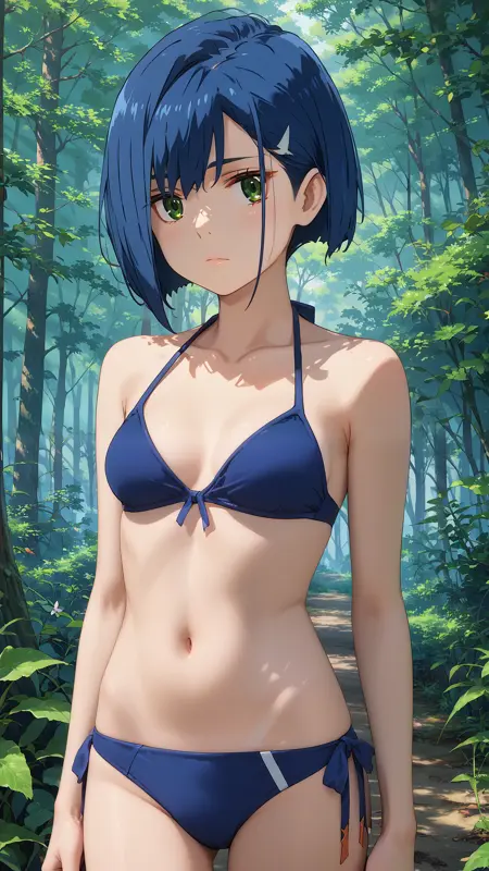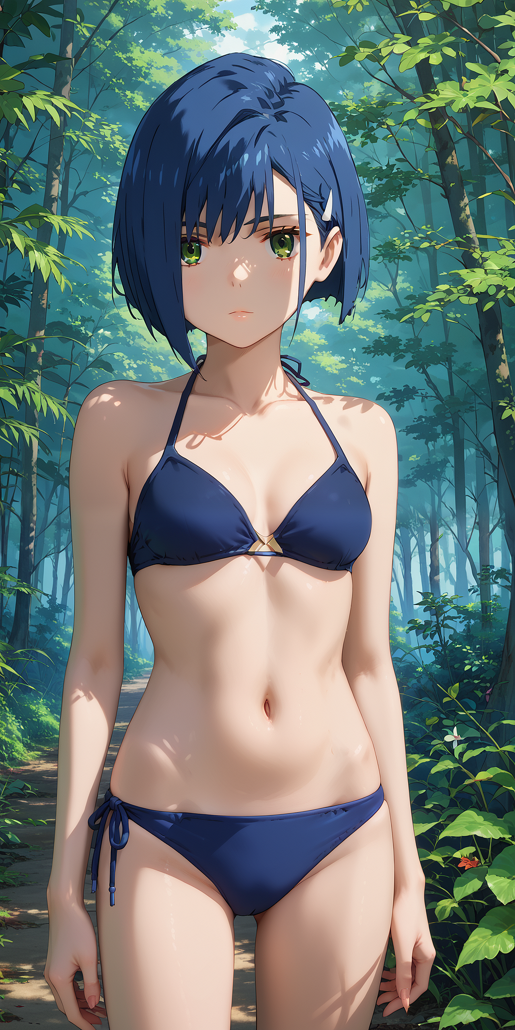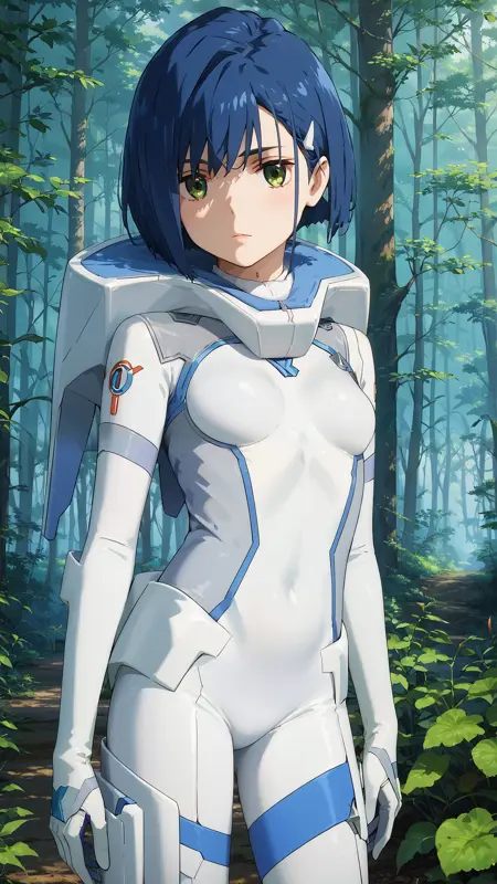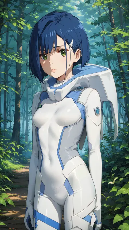 캐릭터: ichigo_franxx, 파란색 머리, 단발, 머리핀, 초록색 눈,