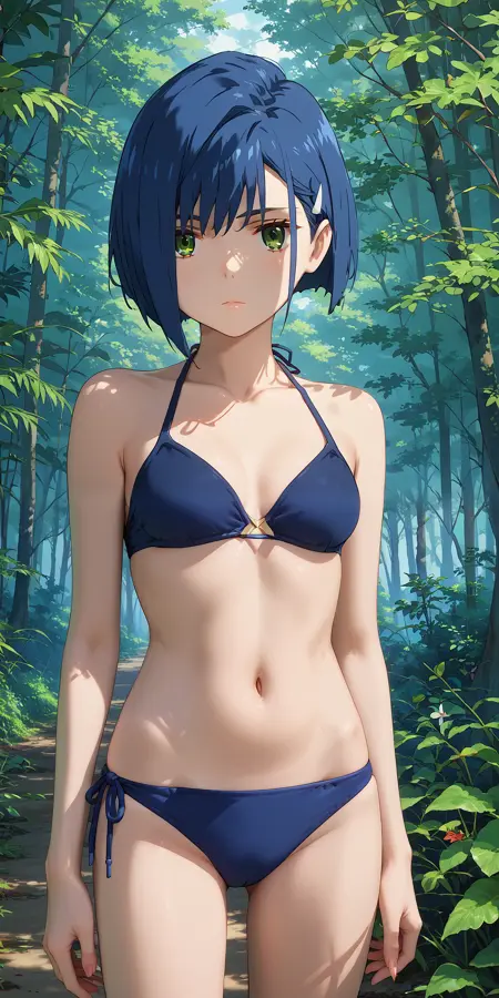 ichigo_franxx,蓝发,短发,发夹,绿眼,