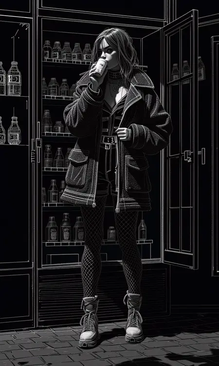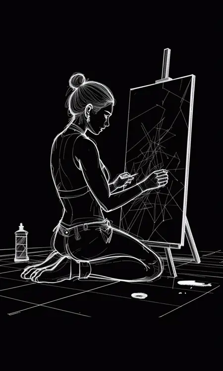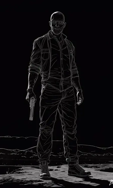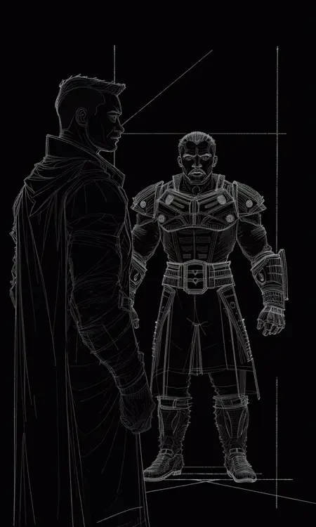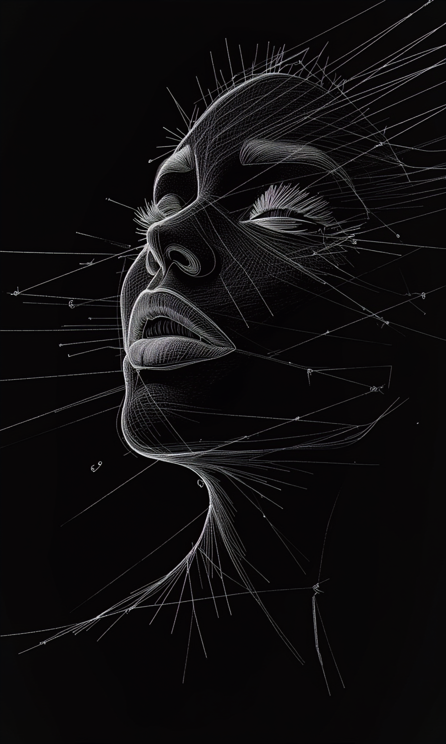这种风格在深色背景上使用细腻的发光白线,营造出一种技术感十足、近乎“线框”的美学,强调深度与细节,同时带有一丝电影 noir 的韵味。