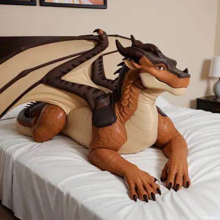 Additional Prompt: brown scales, dragon, horns, claws, wings, tail