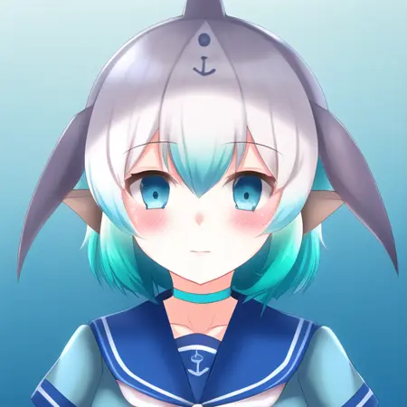 标签:cbd,独照,1个女孩,蓝色头发,蓝色眼睛,短袖,短发,灰色头发,水手领,浅蓝色荷叶边水手裙,海豚尾巴,背鳍,喷水孔,围巾,Japari标志,渐变发色,头发在眼睛之间,刘海,头顶鳍,海豚女孩,颈圈,锁骨,锚形符号