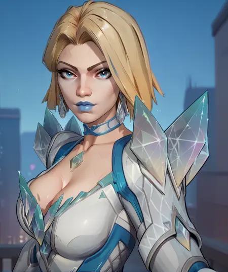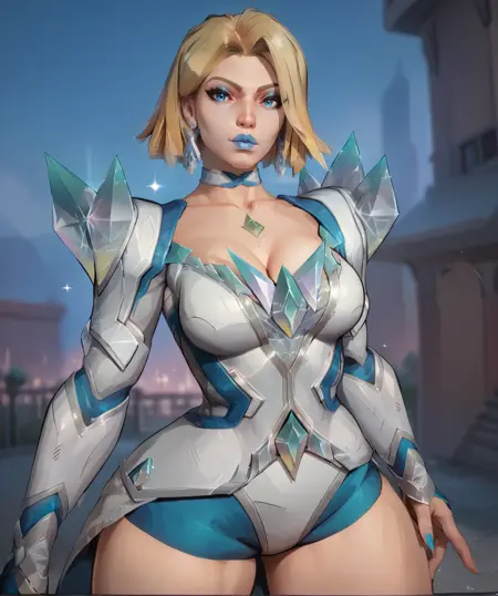 emfrstMRxl, 蓝眼睛,金发,中长发,妆容,蓝色唇膏,