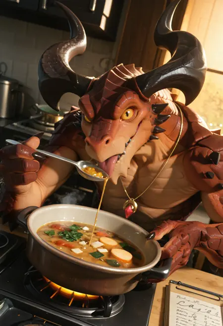 // 폰이: drogoz, scalie, dragon, humanoid, reptile, wingless dragon, abs, anthro, claws, erection, horn, jewelry, male, muscular, pecs, serratus, solo, spiked tail, spikes, spikes (anatomy), tail, tongue, tongue out, weapon, yellow eyes