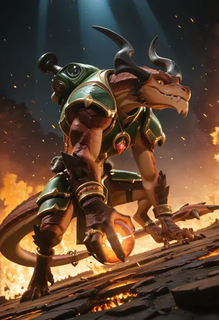 📝 Дрогоз — это антагонистичный драконий воин и разрушитель в игре Paladins. Он использует реактивный ранец для передвижения по воздуху и сражается с помощью мощной ракетницы. Обладает агрессивным стилем боя, специализируется на уроне издалека и внезапных атаках сверху. Его ультимейт — Dragon Punch — пробивает любого врага с одного удара. Дрогоз — воплощение огненной ярости и разрушения, обладающий превосходством в вертикальности и зоне поражения.