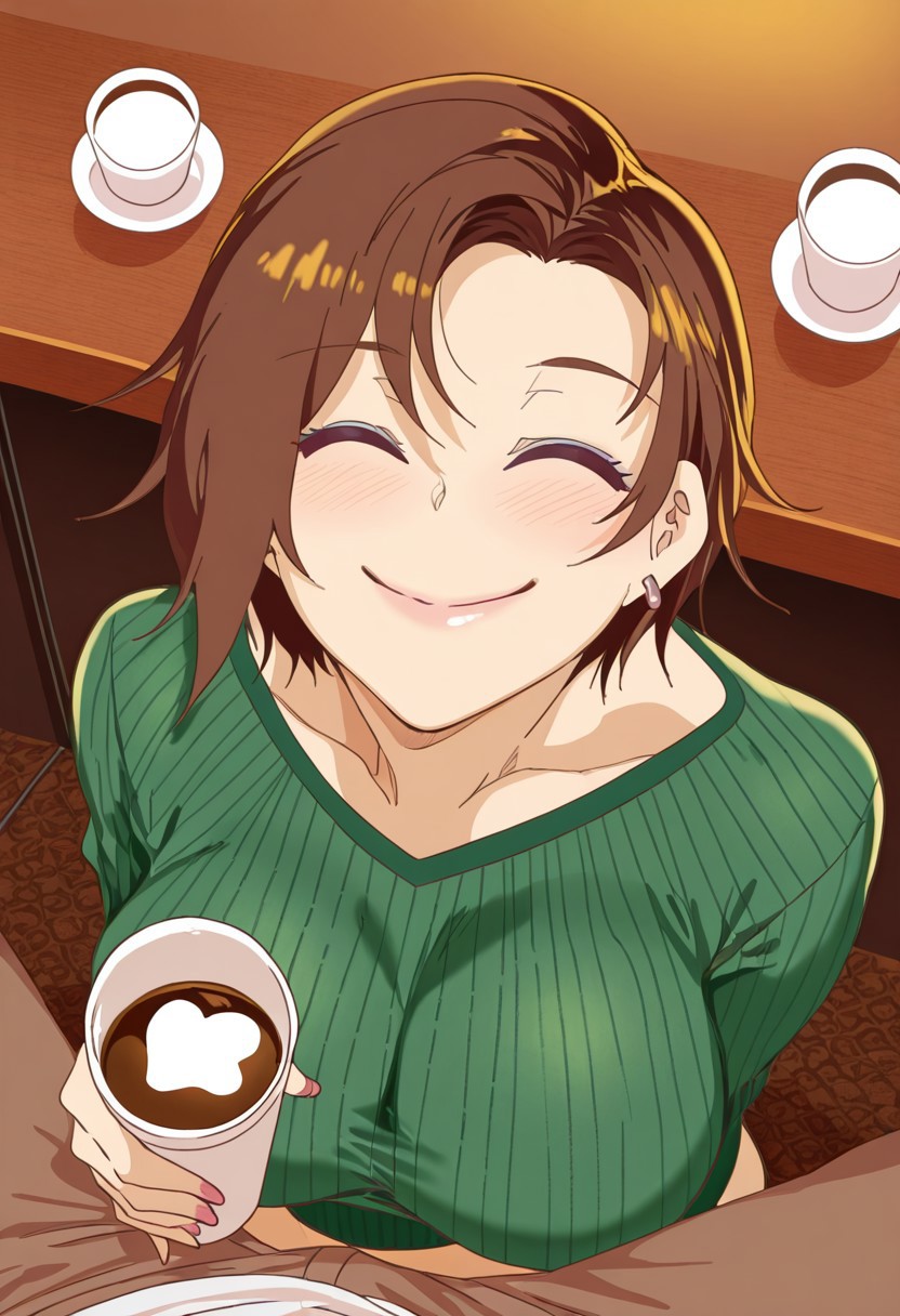 (( lora:onna\_tomodachi's\_mom:1 , onna_tomodachi's_mom, beautiful blue eyes, clear eyes, piercing eyes, bright pupils, beautiful brown hair, beautiful short bob haircut, huge and shaggy breast, thin waist, wide hips, beautiful skin, beauty, extraordinary beautiful girl, milf, attractive woman, super sexy woman, lustful body, sexy woman with seductive obscene body, sensual body, voluptuous body, sexy milf, silver earring, ))