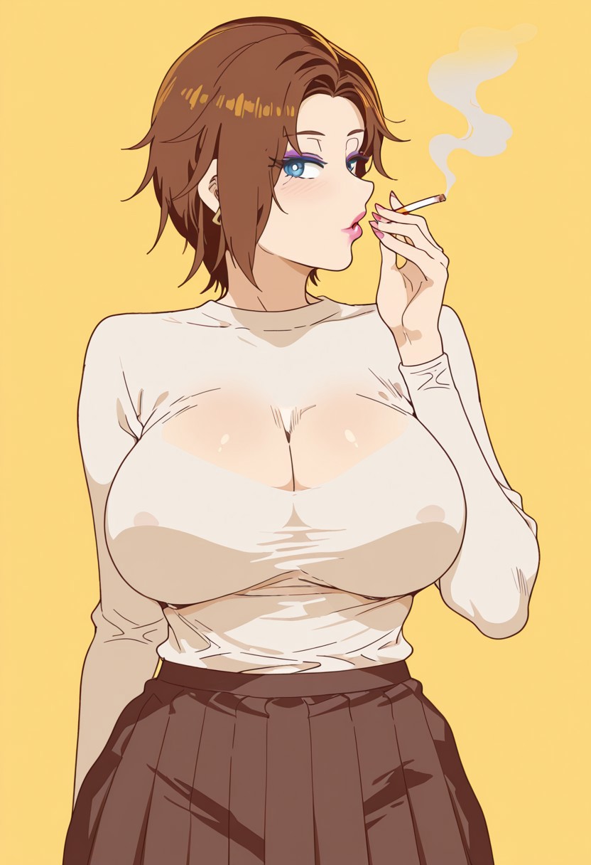 (( lora:onna\_tomodachi's\_mom:1 , onna_tomodachi's_mom, beautiful hair, beautiful short bob haircut, clear eyes, piercing eyes, bright pupils, beautiful eyes, huge and shaggy breast, thin waist, wide hips, beautiful skin, beauty, extraordinary beautiful girl, milf, attractive woman, super sexy woman, lustful body, sexy woman with seductive obscene body, sensual body, voluptuous body, sexy milf, no piercings, ))