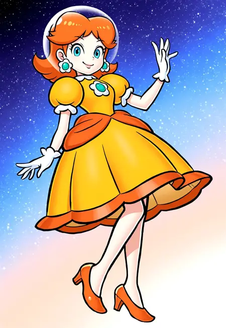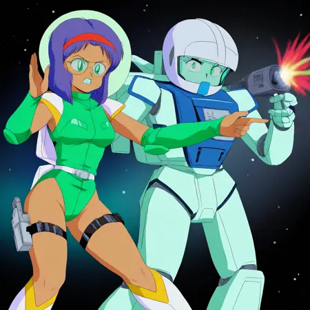 さまざまなキャラクターがシンプルで丸い宇宙ヘルメットを装着したカートーンや挿絵の画像で学習済み。襟付きと襟なしの両方を含む。
