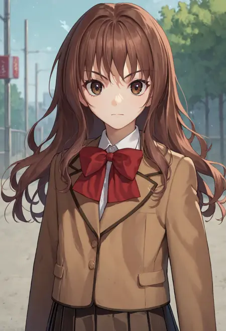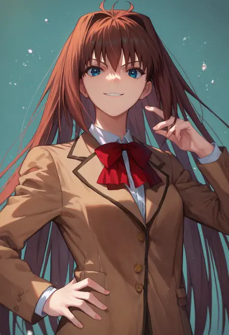 1girl aoko aozaki, school uniform red bowtie brown jacket