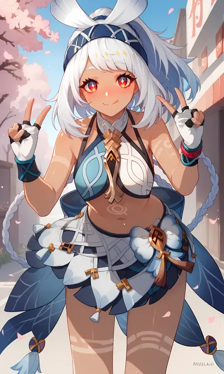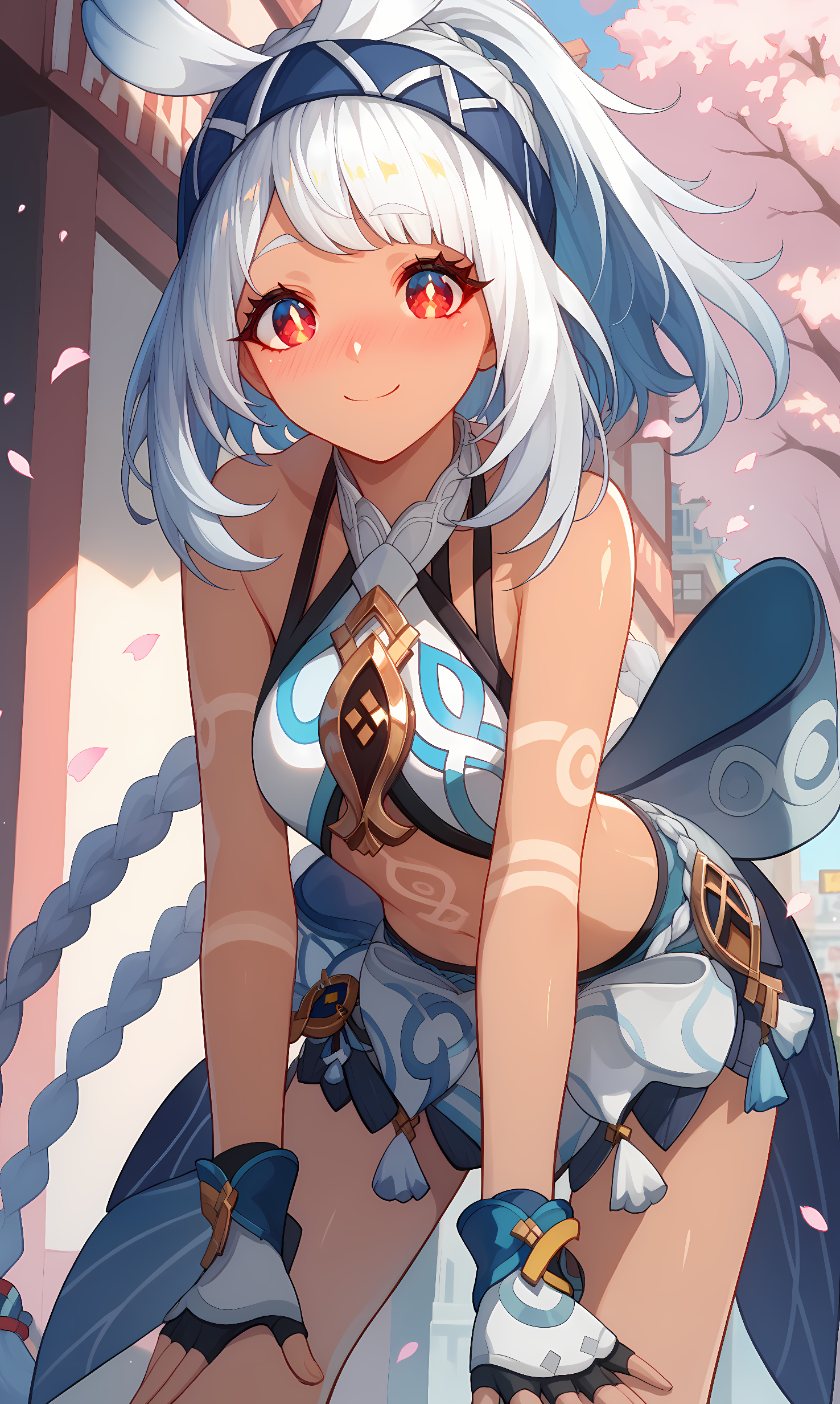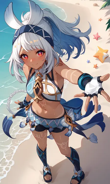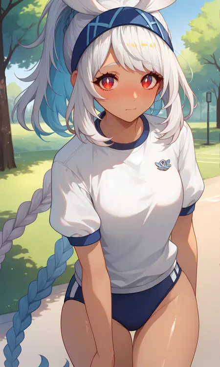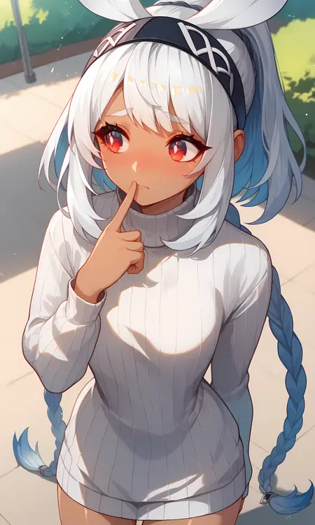 mualani,红眼睛,白发,长发,马尾,双辫,深色皮肤,多彩,鬓发,蓝色发带