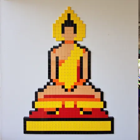 ceramic tile street art mosaic of a [prompt][prompt] The mosaic is made entirely of single layer of equally sized 1 inch square ceramic tilesstreet art photography