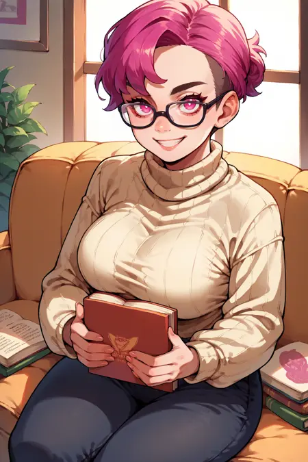 Trigger word is "pmtyg" and "pink hair, short hair, pink eyes" is required.
