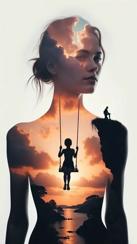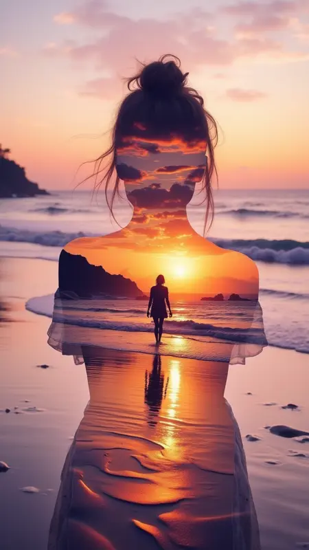 마법 같은 더블 노출 미학: 우주적 풍경, 신화적 생물, 마법의 숲과 같은 대조적인 요소를 쉽게 융합하여 층층이 쌓인, 매혹적인 시각 효과를 창조하며, 이세계적인 경이로움을 불러일으킵니다.