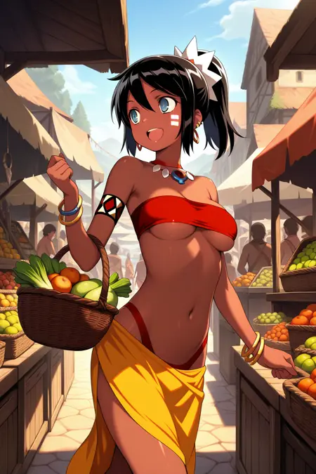 基本衣装: ネックレス、赤いチューブトップ、ブレスレット、アームバンド、黄色い腰布、(赤いパンツ:0.7)