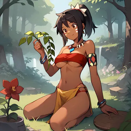 基本衣装: ネックレス、赤いチューブトップ、赤いパンツ、黄色いサロング、ブレスレット、アームバンド