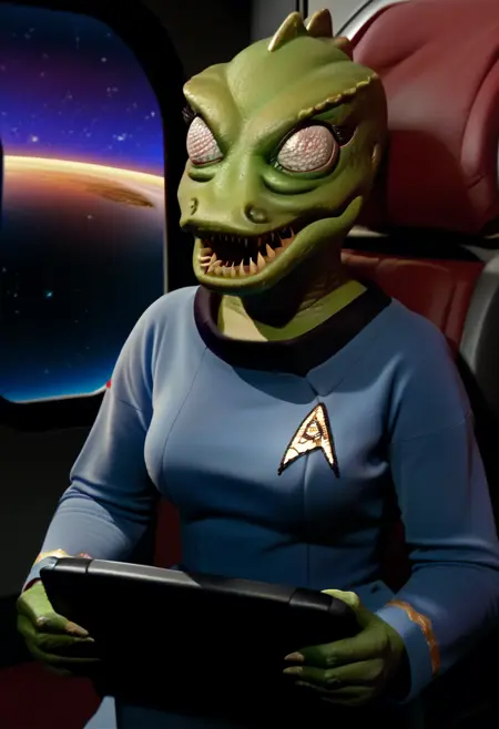 此 LoRA 使用《星际迷航:原初系列》“竞技场”剧集的蓝光截图以及漫画《Gorn 危机》进行训练。因此,它有时会默认生成趾行式腿部。添加 armor、肩甲、武器和长矛等标签,通常能重现漫画中的外观。如果您想要更接近 STO 的风格,可以添加鳞片;如果您想要 STO 的眼睛,则需添加裂隙状眼睛、眼袋和黄色眼睛。
