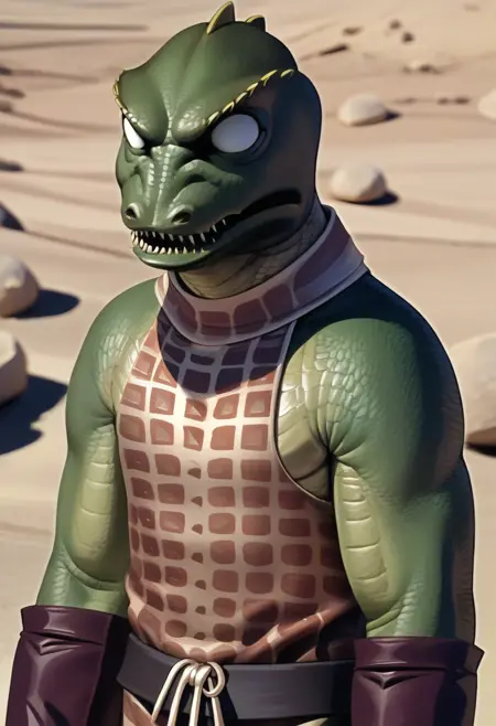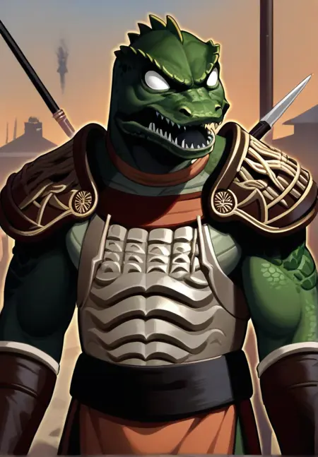 이 LoRA는 TOS의 'Arena' 에피소드의 블루레이 화면과 만화 《The Gorn Crisis》를 기반으로 학습되었습니다. 이로 인해 종종 디지티그레이드 다리를 기본으로 사용합니다. armor, 어깨 보호구, 무기, 창을 태그하면 종종 만화의 외모를 재현할 수 있습니다. STO 스타일을 더 원한다면 비늘을 추가하고, STO 눈을 원한다면 좁은 동공, 눈 아래 주름, 노란색 눈을 추가해야 합니다.