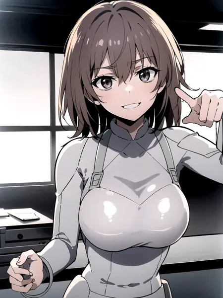 以下のプロンプトとの併用をおすすめします: lora:Misaka_Worst_V5:0.7, lora:Misaka_Worst_B:1, 中程度の胸, 赤褐色の髪, 短い髪, (目元のクマ), ボディスーツ, 脇に腕
