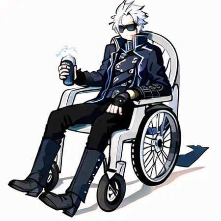 (((實際上,如果你想召喚維吉爾,需要輸入 motivatedchair, plastic chair, solo, short hair, simple background, shirt, gloves, long sleeves, 1boy, white background, holding, sitting, closed mouth, jacket, full body, weapon, white hair, grey hair, male focus, boots, open clothes, black gloves, pants, sword, artist name, fingerless gloves, black footwear, holding weapon, vest, coat, black shirt, shadow, chair, holding sword, black pants, sunglasses, knee boots, katana, sheath, forehead, open coat, black coat, sheathed, can, blue vest, on chair, hair slicked back, blue coat, holding can, beer can, holding sheath)))