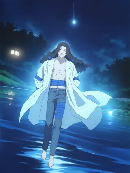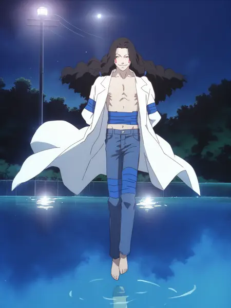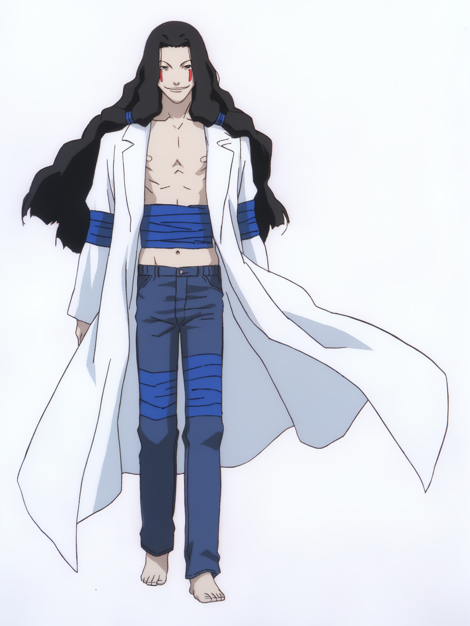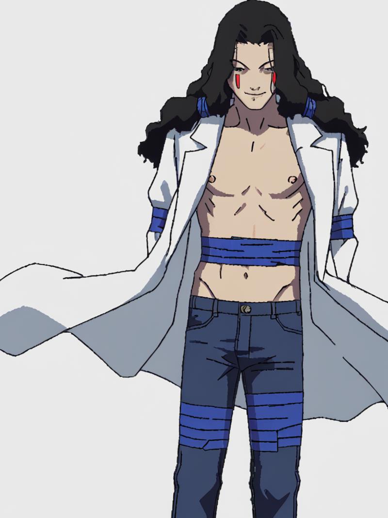 masami eiri \(sel\), 实验室外套, 牛仔裤, 赤脚