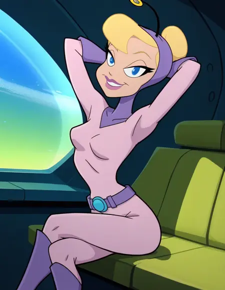 bodysuit, covered head, antennae, gloves, belt, high heel boots