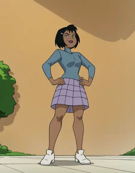 xmadelynx, black hair, short hair, hairclip, green eyes, lipstick, dark-skinned female