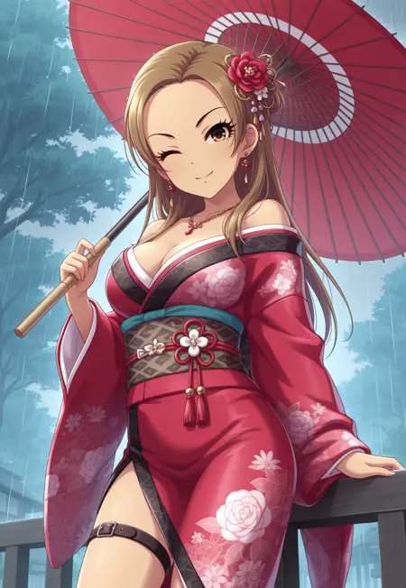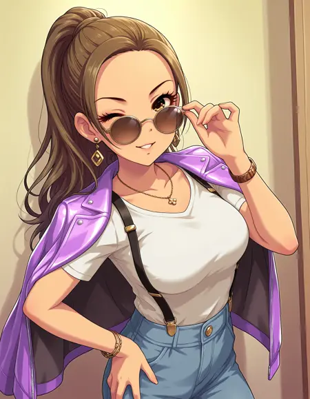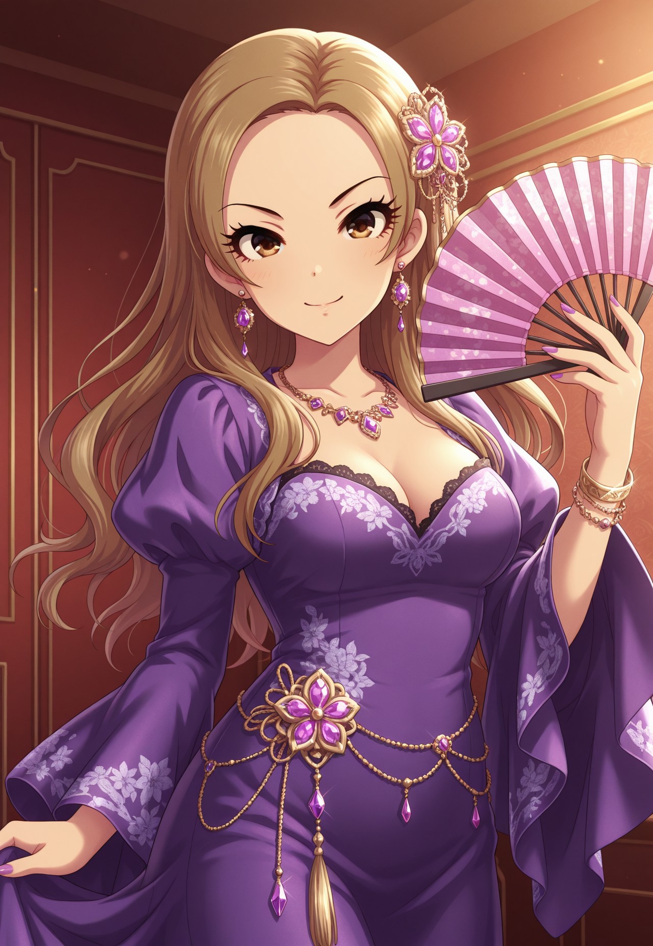 ryomatsunaga, long hair, brown eyes, brown hair, forehead, medium breasts