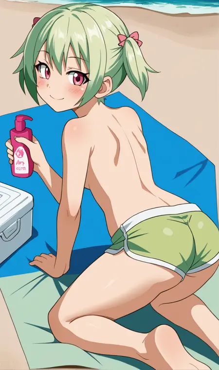 主要头部特征-'浅绿色头发,短发,粉红色眼睛',- 在权重较低或未戴魔术帽时,头发可能会变得更短,添加'长刘海'会略有帮助。