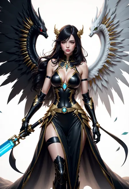 "(masterpiece,very detailed, hd, best quality, detailed face:1.3)fsstyle, 3d anime illustration of a beautiful girl, in a long red and black dress, queen of hearts, standing on a chess board, chess, anime, realistic"
