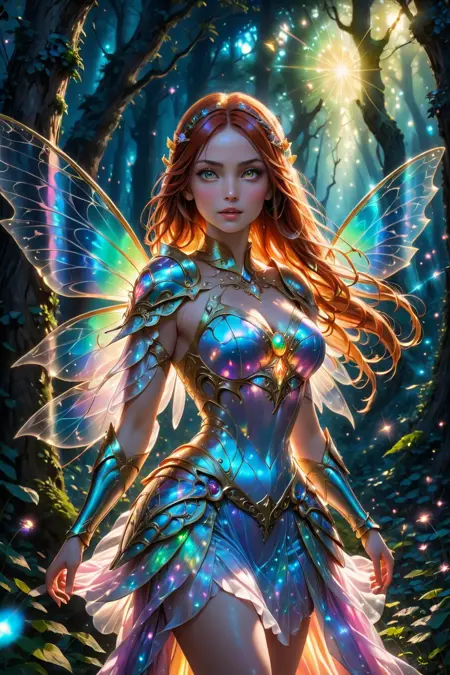 "cinematic shot of a adult female magical fairy, beautiful face details and long hair, holding a magical glowing sword in an epic attack pose, colorful magical fairy wings on her back, magical fantasy forest in background with glowing mushrooms, fsstyle"