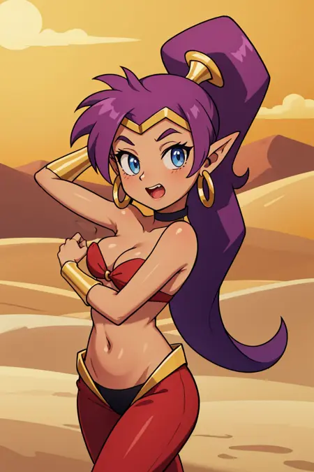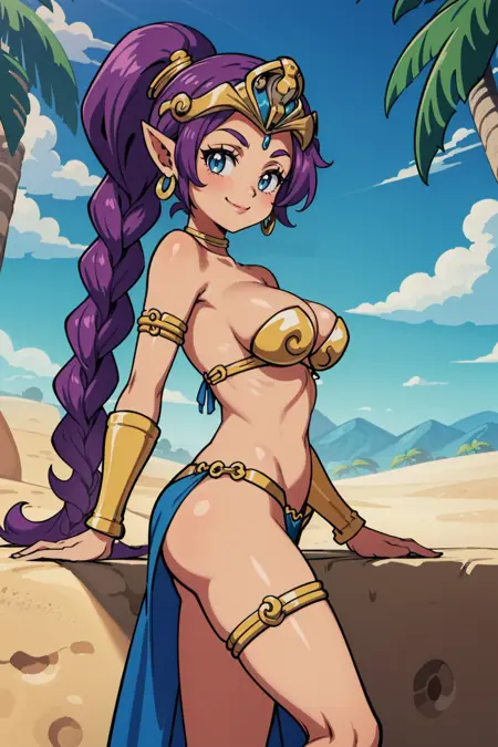 Contains her regular appearance and her Snake Princess outfit. Trigger word is "shantae" for both.