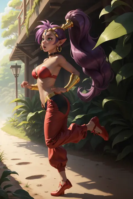 Contains her regular appearance and her Snake Princess outfit. Trigger word is "shantae" for both.