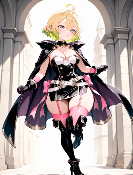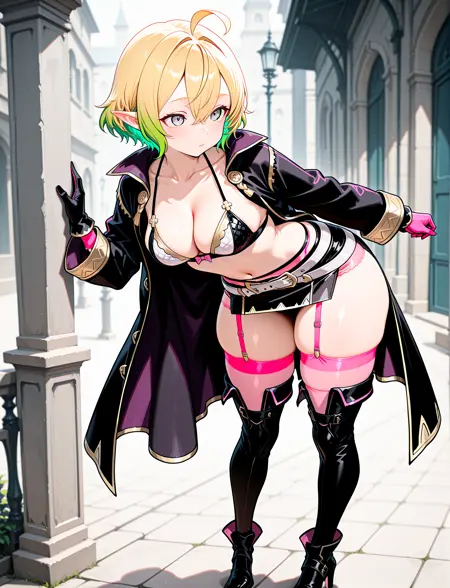 | 학습된 단어 | ParOutfit, ahoge, blonde hair, green inner hair, green tips, short hair, hair between eyes, grey eyes, pointy ears, medium breasts, collarbone, gold trim, black and white top, scale bikini, midriff, navel, white belt, cross belts, multiple belts, black skirt, black gloves, pink thighhighs, pink garter straps, black boots, high heel thigh boots, hood down, coat,복사됨! ManaMorgan, ahoge, blonde hair, green inner hair, green tips, short hair, hair between eyes, grey eyes, pointy ears, medium breasts, collarbone, cleavage, strapless, black detached collar, white top, sleeveless dress, white belts, miniskirt, garter straps, gold trim, black gloves, pink under gloves, pink thighhighs, black boots, high heel thigh boots, waist pink ribbons, cloak,복사됨! |