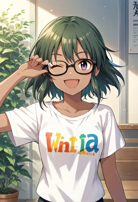 トリガー単語: natalia、短い髪、暗い肌の女性、暗い肌、紫の目、緑の髪
