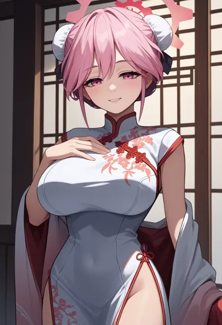如需,可添加 粉色头发粉色眼睛。她的默认服装效果远不如她的旗袍。