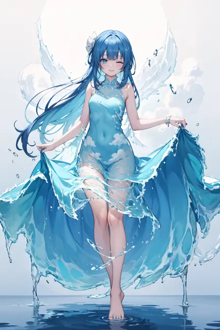 你可以用"waves","sea","water"和"water dress"等tag来增强效果。