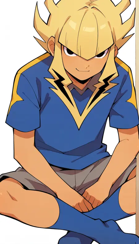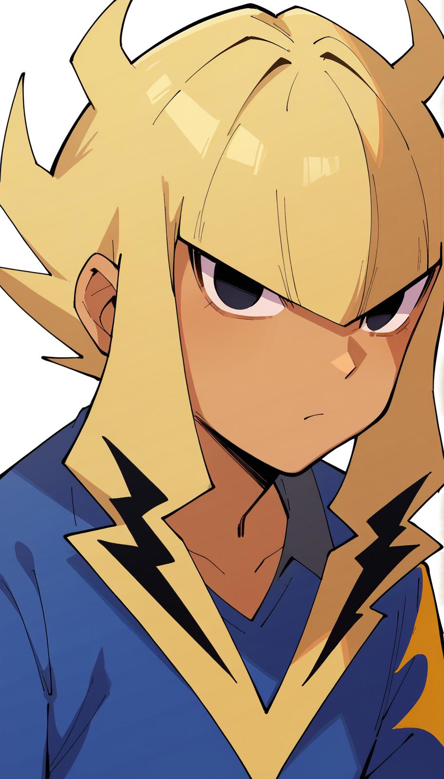 mokuren, tan, blonde hair, two-tone hair, black eyes, no pupils