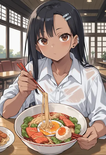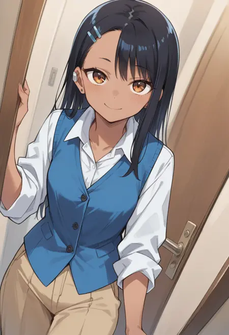 Score_9, score_8_up, score_7_up BREAK Nagatoro:1 N4G4T0R0, white shirt, upper body, cowboy shot