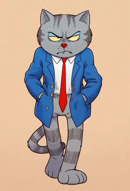 대체 옷차림을 원할 경우 파란 정장, 흰색 칼라 셔츠, 빨간 넥타이 사용