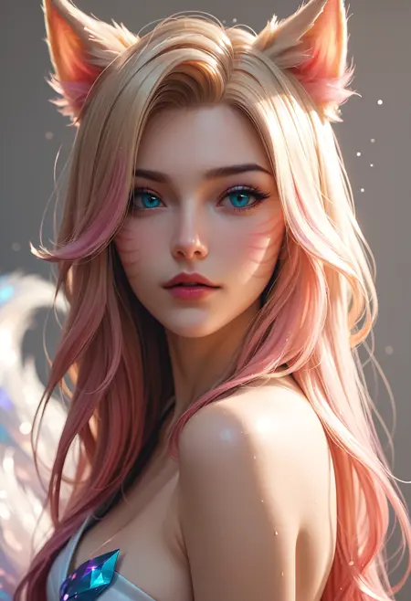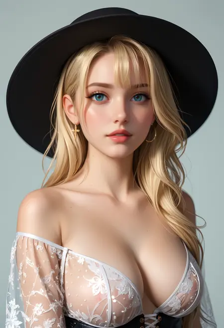 score_9, score_8_up, score_7_up, score_6_up, score_5_up, score_4_up, close up, cute, looking at viewer, woman, 22 years old, high ponytail, beauty, harmonious, face focus, a woman, blonde hair, black choker, posing, comic site, emotional, eye view, detailed, intimate, clear, personal, highly contrasted, excellent composition, advanced cinematic perfect light, highly color focused, dynamic, long hair, lush breasts, wide hips, front view, simple grey background, pastel pink detailed background, dynamic angle, lush breasts, pinup posing, dynamic angle, looking at viewer, sitting, ruffled dress, ribbons, floating hearts, selfie, smooth skin, glossy skin, and hyper-realistic with a luminous sheen, porcelain-like effect, slight gradients ,depth,glowing effect, three-dimensional feel