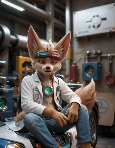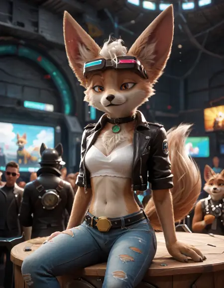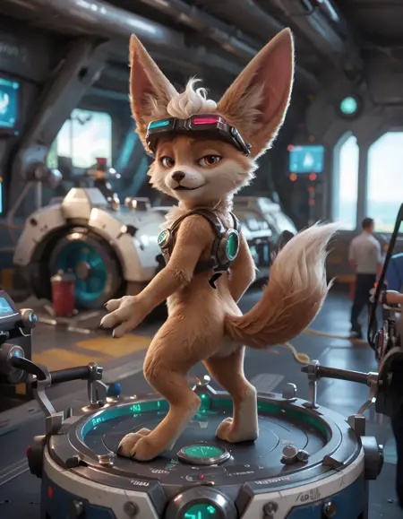 // Illustrious: ch1p_mlbb, mammal, fennec fox, furry, solo, goggles, 1boy, fingerless gloves, body fur, furry male, looking at viewer