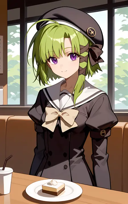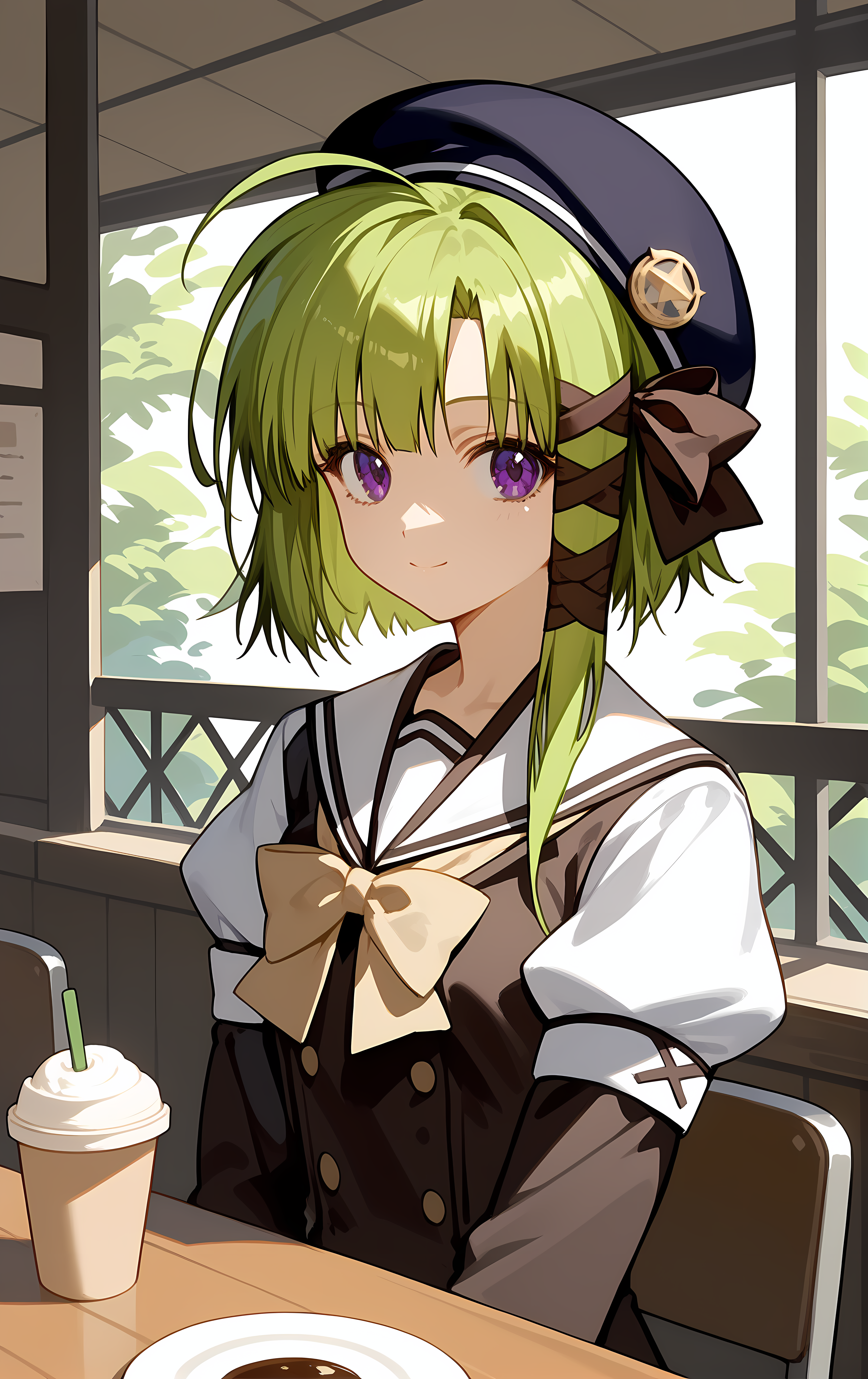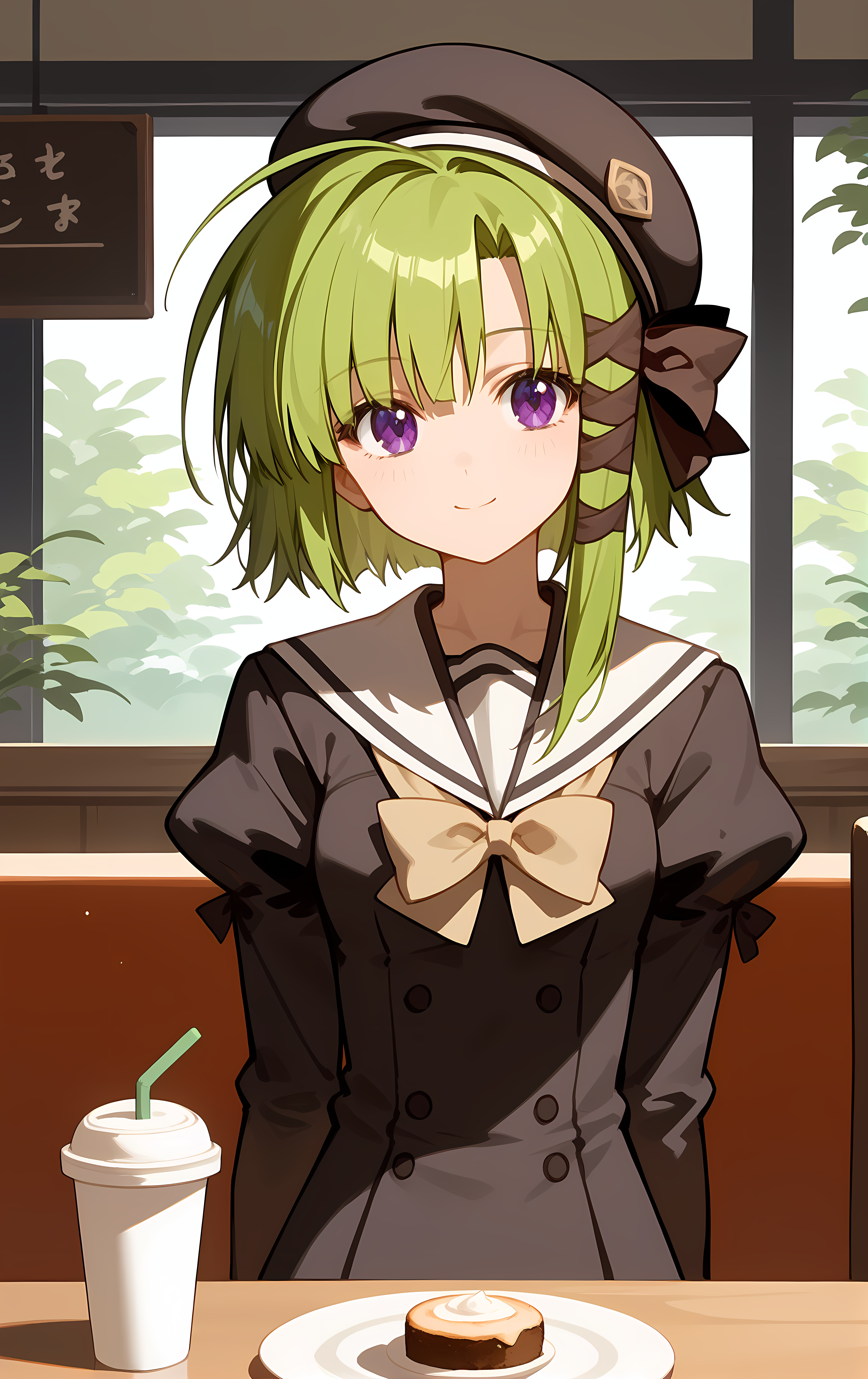 衣装1 → hat, school_uniform, long_sleeves, puffy_sleeves, beret,