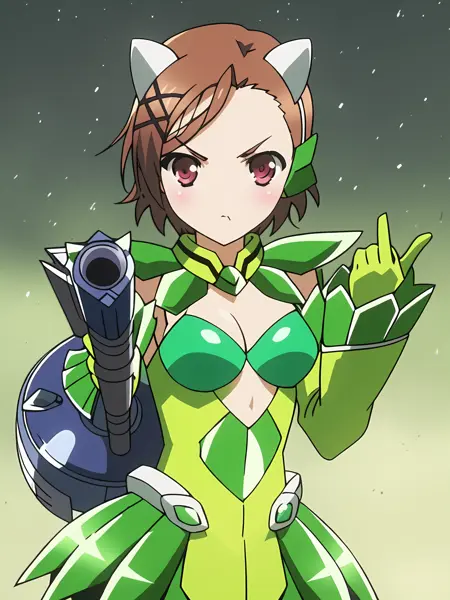 - 緑の装甲、分離された袖、胸元、武器