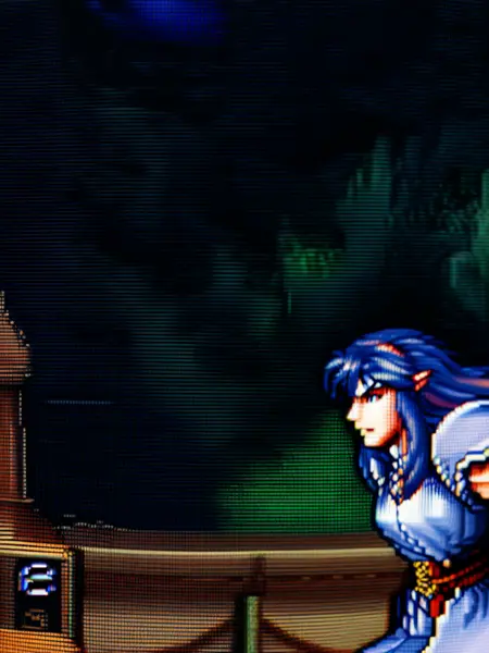 LoRA 학습 및 구형 픽셀 아트 게임을 표시하는 CRT TV의 많은 클로즈업 샷