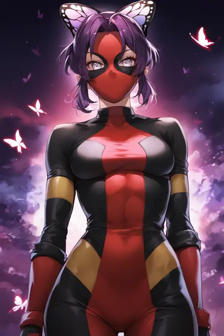 提示:死侍化、死侍、红黑服装、白眼、面具、紧身衣、全脸面具、面部遮盖、全罩面具,