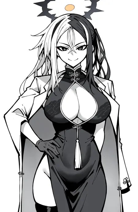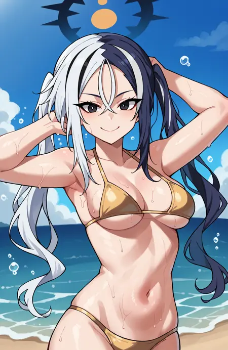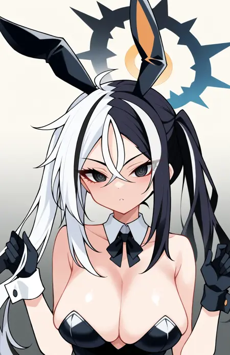 タグ: 開、KaiHalo、ツートーンヘア、分割色ヘア、目の間に髪、多色髪、背中目、ツインテール(白髪、黒髪が役立つ可能性あり)