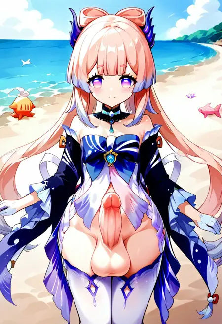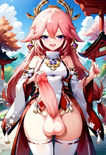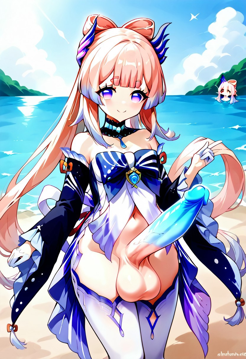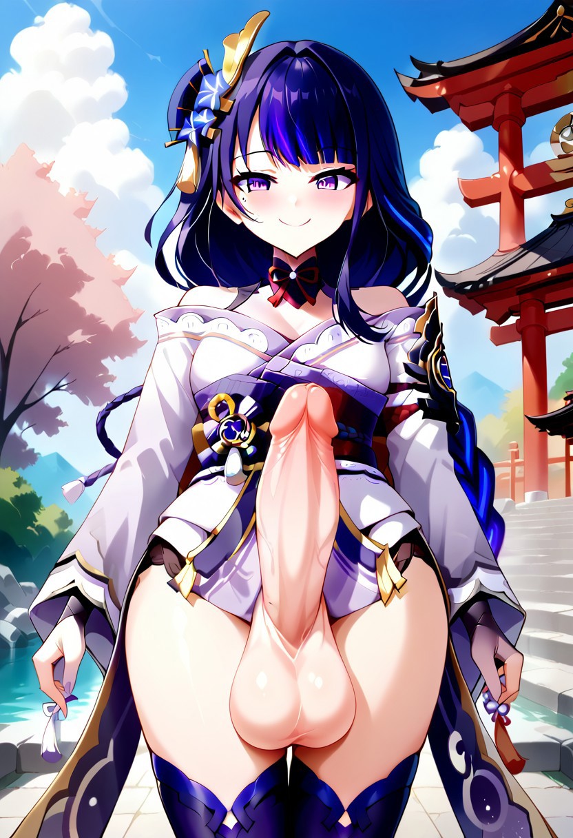 角色雷电将军、八重神子和珊瑚宫心海来自游戏《原神》,有女性和双性人以及双性人发光阴茎版本
